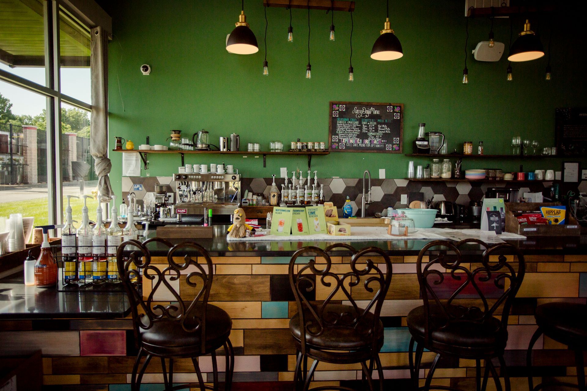 Come early or stay after your appointment to relax in our cozy café. We serve Roasterie coffee, protein shakes, smoothies, and small bites—perfect for guests or a peaceful solo moment between services.